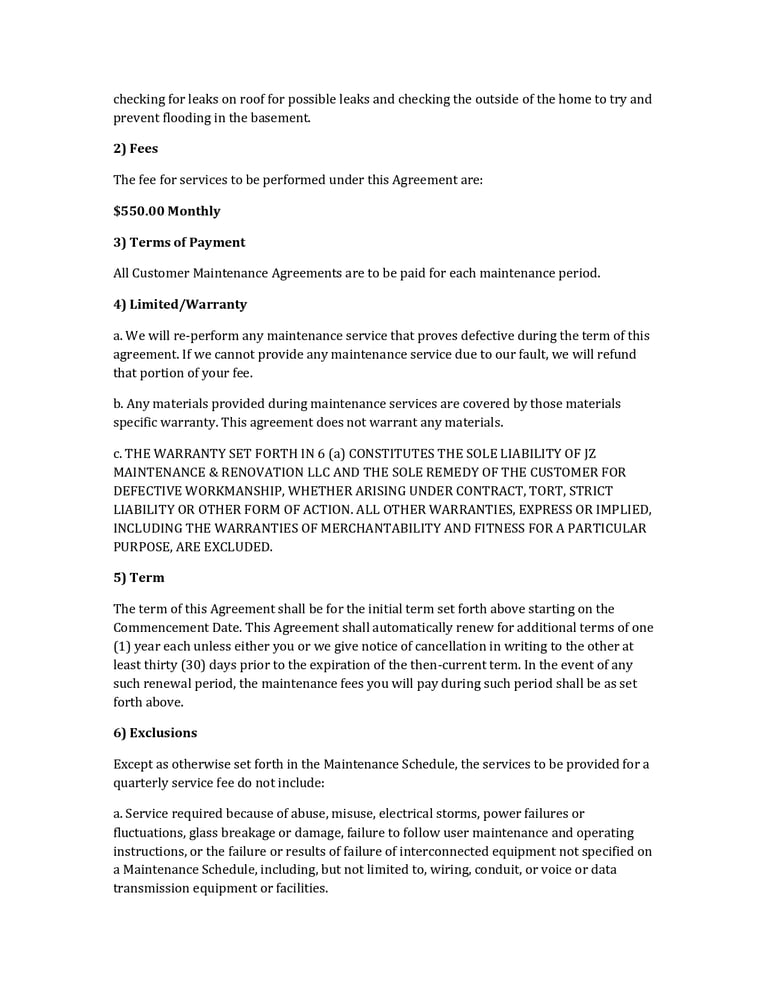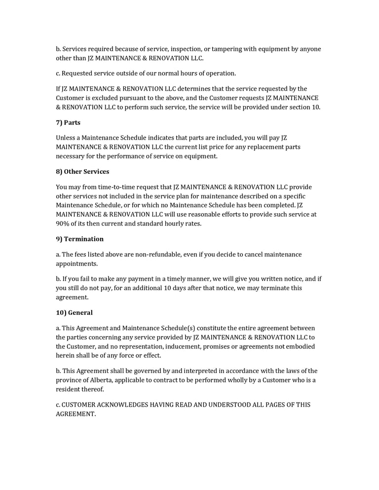 Service Agreement Preview